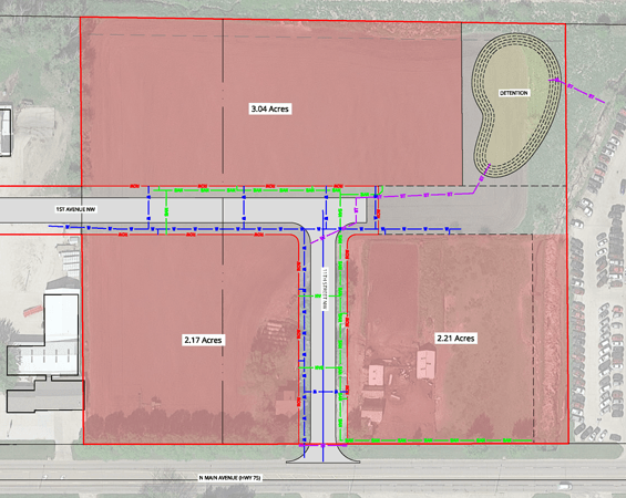 The plat, accepted by the Sioux Center City Council on Monday, includes three lots, ranging from about 2-3 acres, zoned for General Commercial use. The plat also includes adding 11th Street NW coming off of Highway 75, creating an intersection with 1st Ave. NW. The property was rezoned from Highway Commercial to General Commercial, allowing for smaller setbacks and more of a downtown feel.