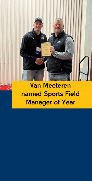 Van Meeteren received the statewide award at the recent Iowa Sports Field Management Association (ISFMA) banquet in Des Moines. The award recognizes professional ability and contribution to Iowa’s sports turf industry.