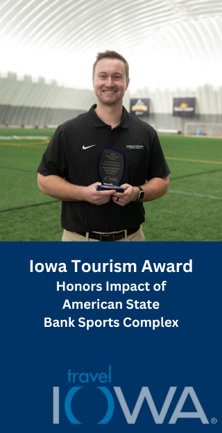 Iowa Tourism Awards recognize excellence in communities, attractions, businesses, and individuals in raising the state’s profile as a tourism destination. The Niche Marketing award recognizes an outstanding campaign that effectively targets a specific audience – sports tourism in the case of the American State Bank Sports Complex.